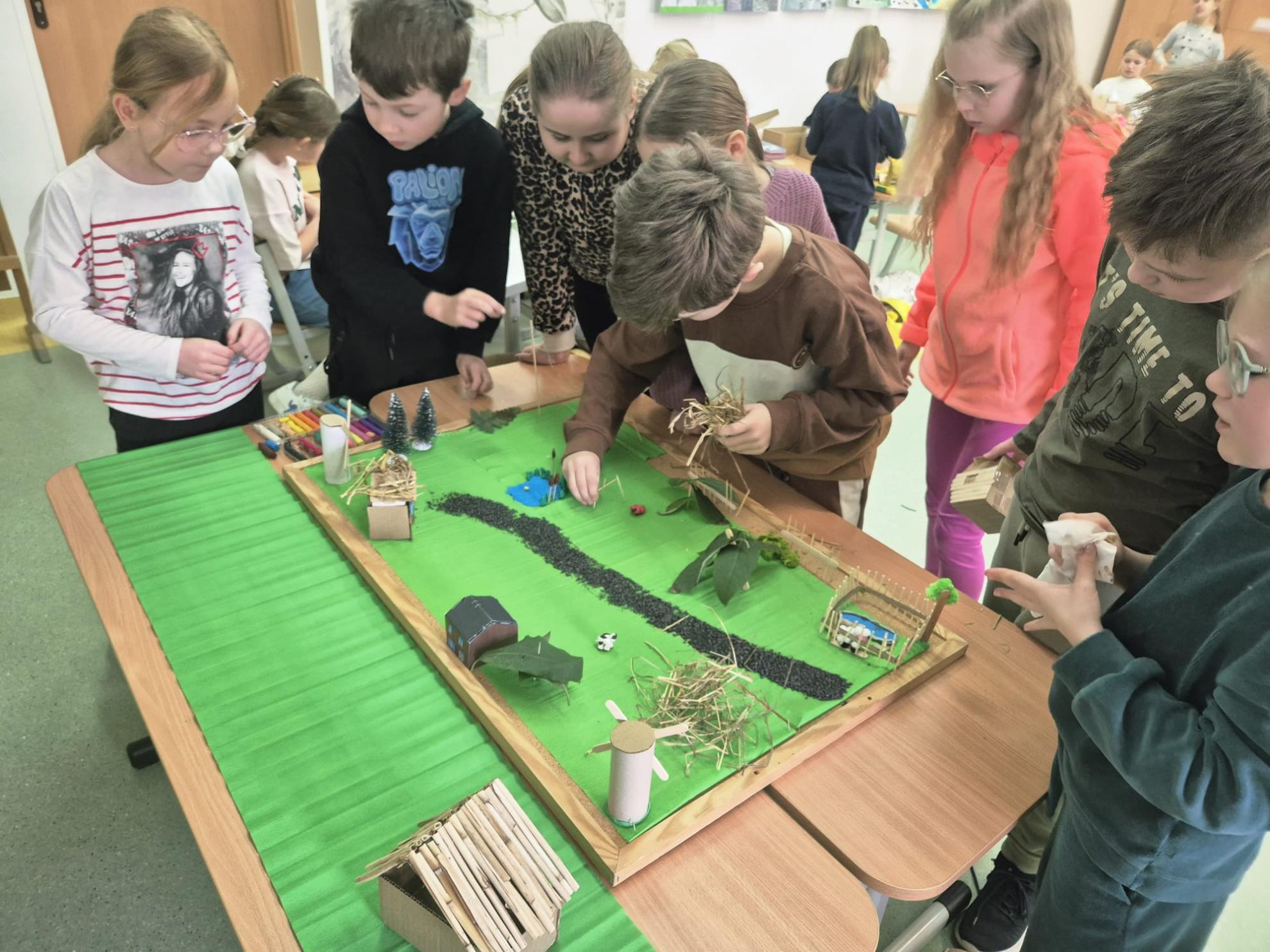 Podsumowaniem naszych działań było stworzenie wspólnej makiety dawnej wsi opolskiej. Zajęcia były bardzo twórcze, pełne współpracy i zaangażowania, a także miały charakter techniczny.