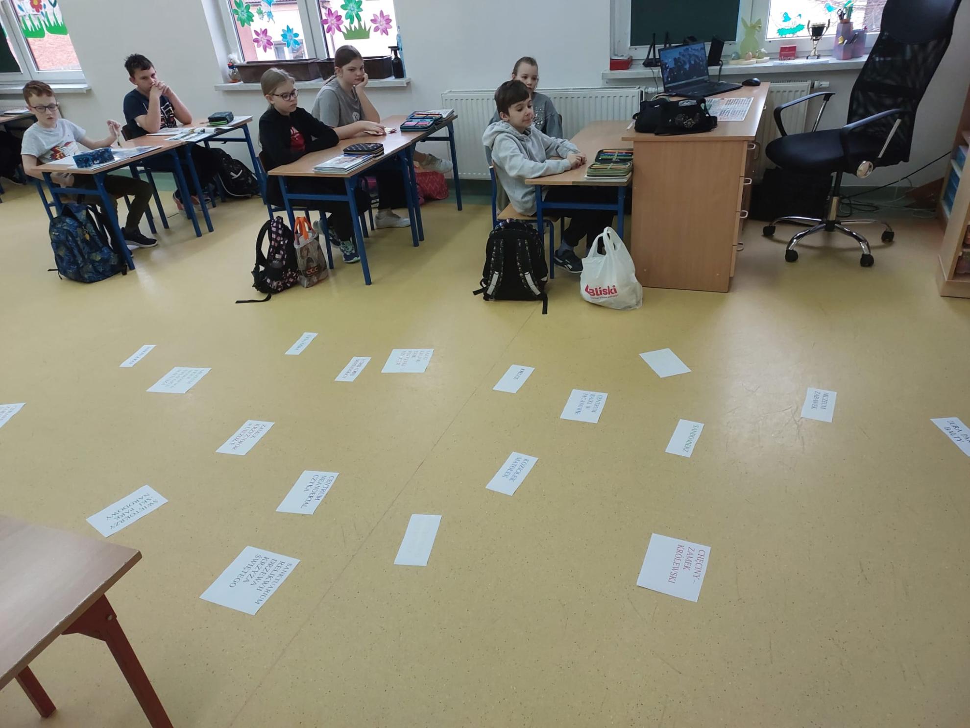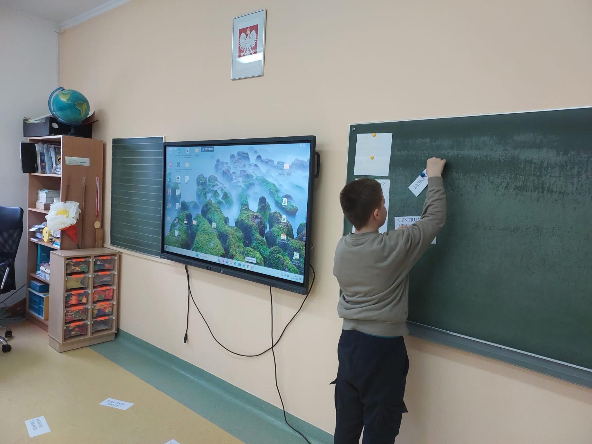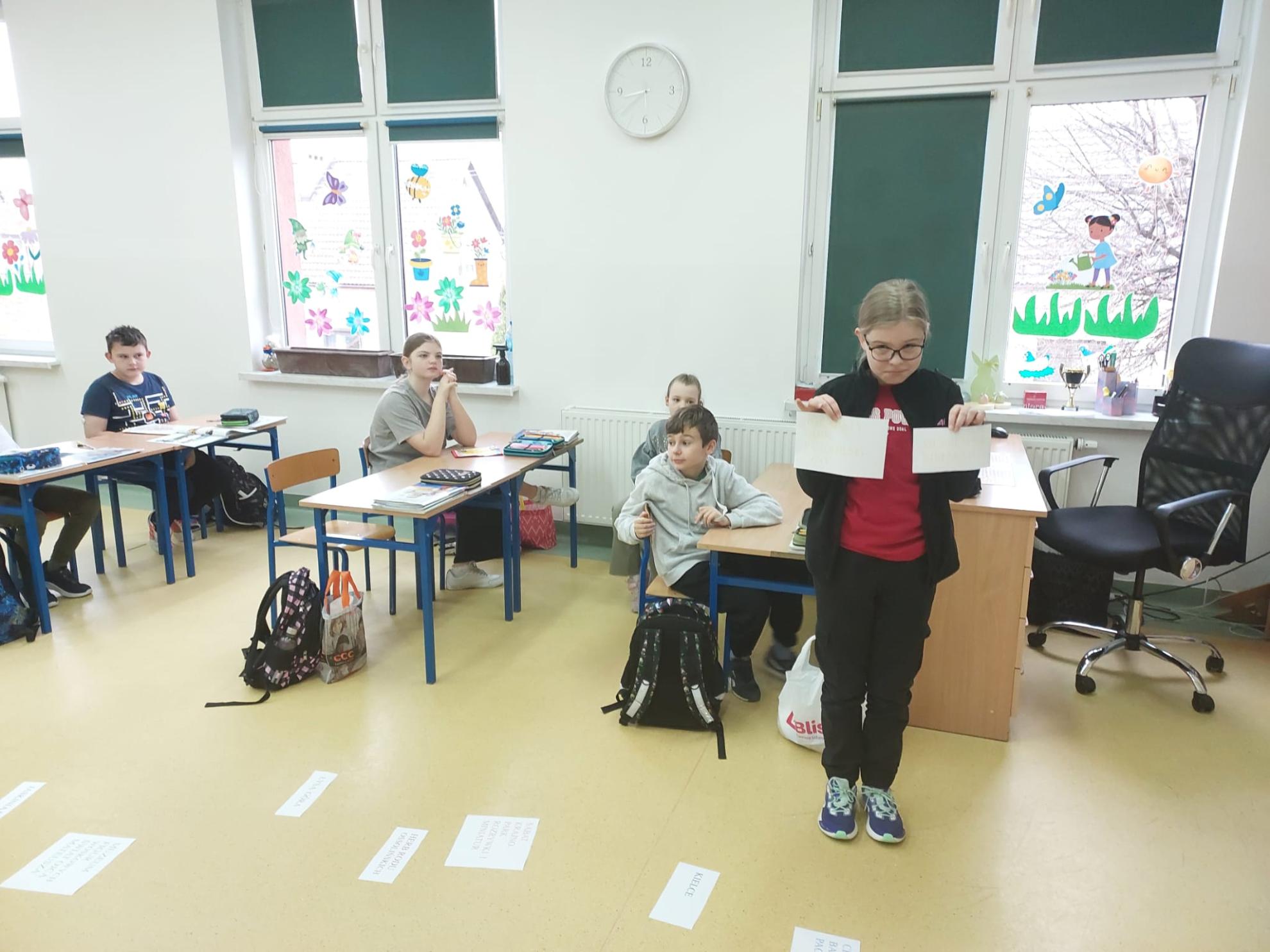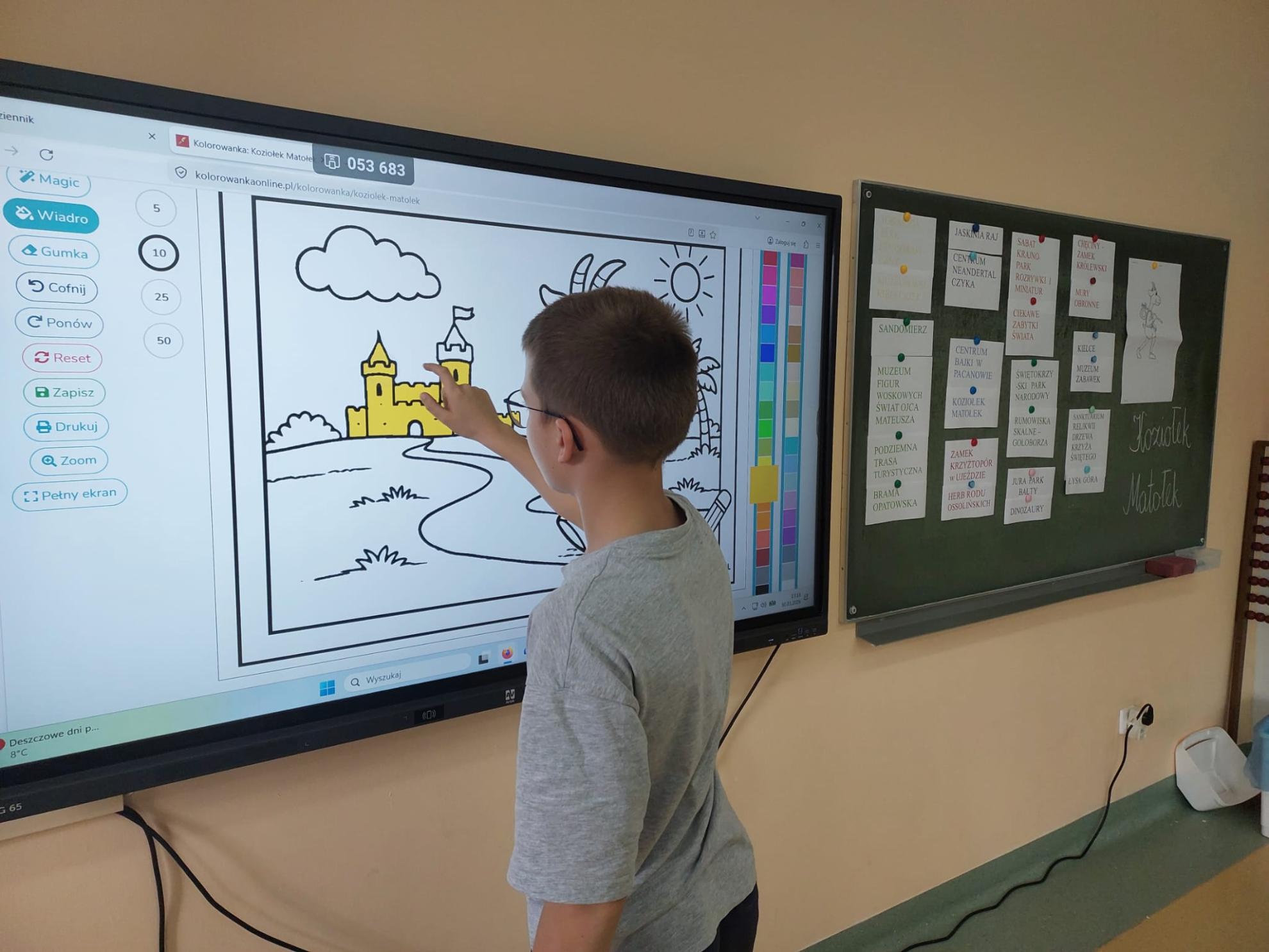 Przyjemną rozrywką było kolorowanie na ekranie i podsumowanie zajęć poprzez zabawę "Połącz w pary". Uczniowie w trakcie tej klasowej podróży poszerzyli wiadomości o swoim kraju, rozwijali wyobraźnię oraz utrwalali nazwy i pojęcia geograficzne.