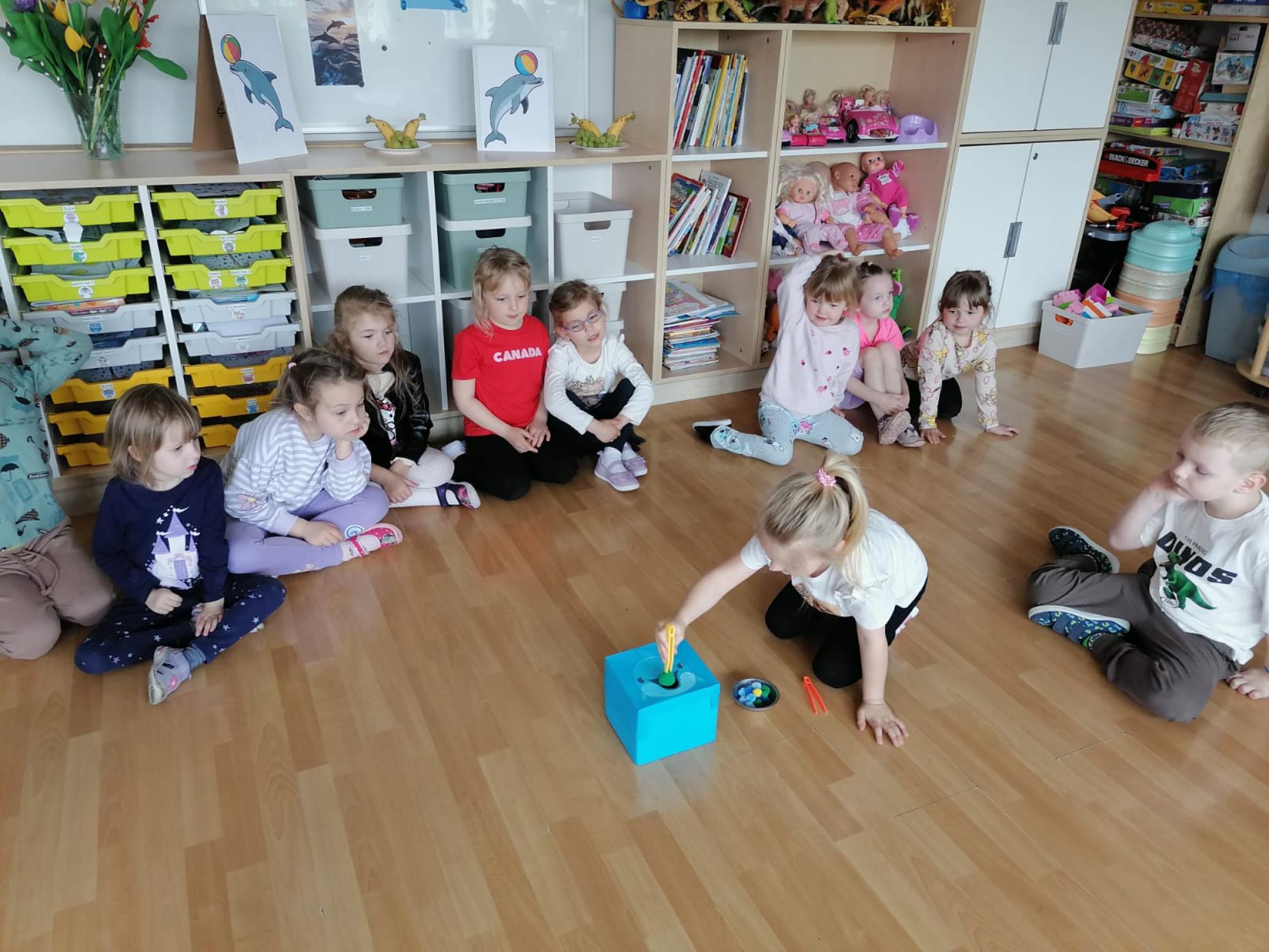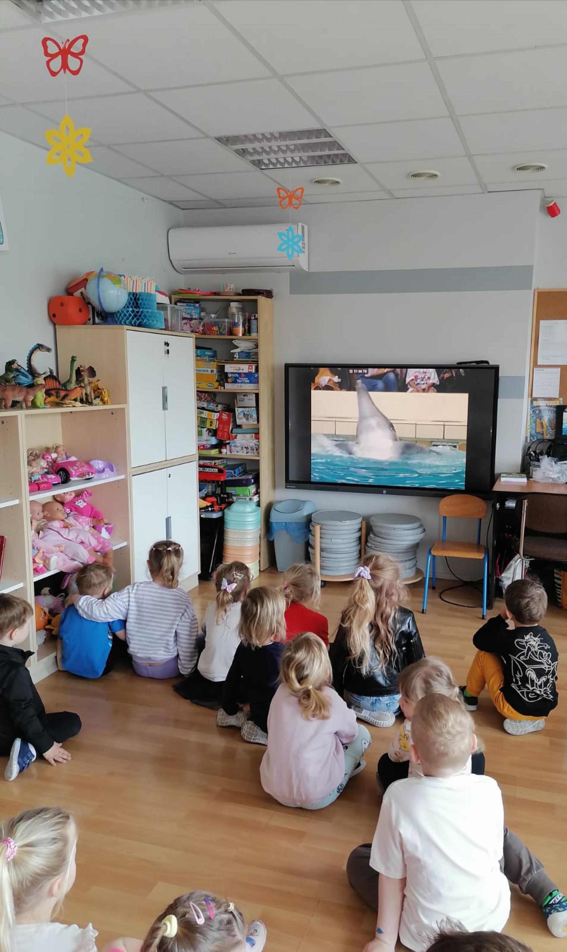 Dzieci obejrzały film edukacyjny o tych wodnych ssakach oraz dowiedziały się od nauczycielki różnych ciekawostek dotyczących tych zwierząt.