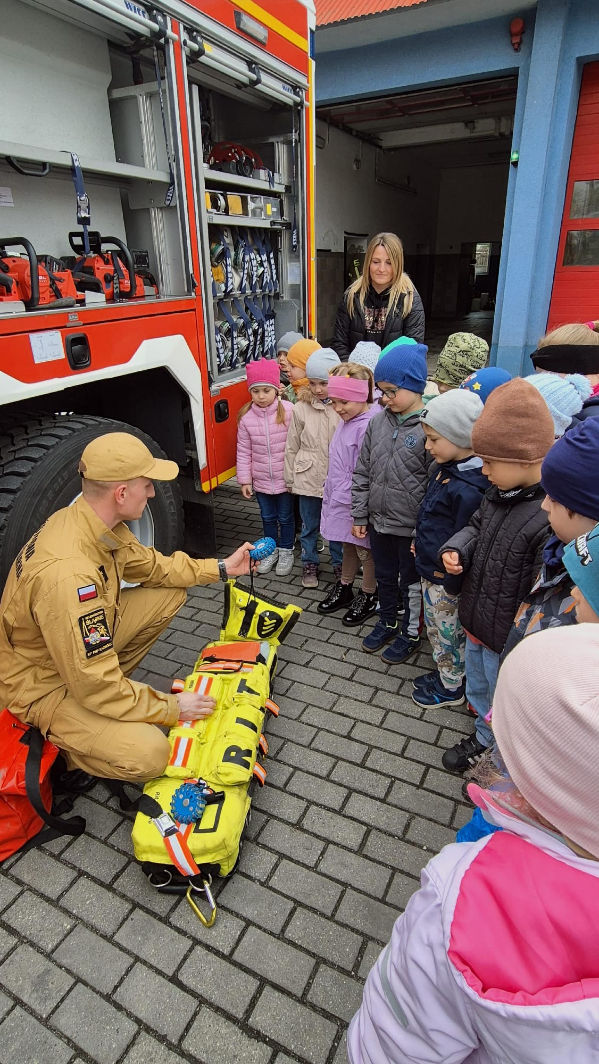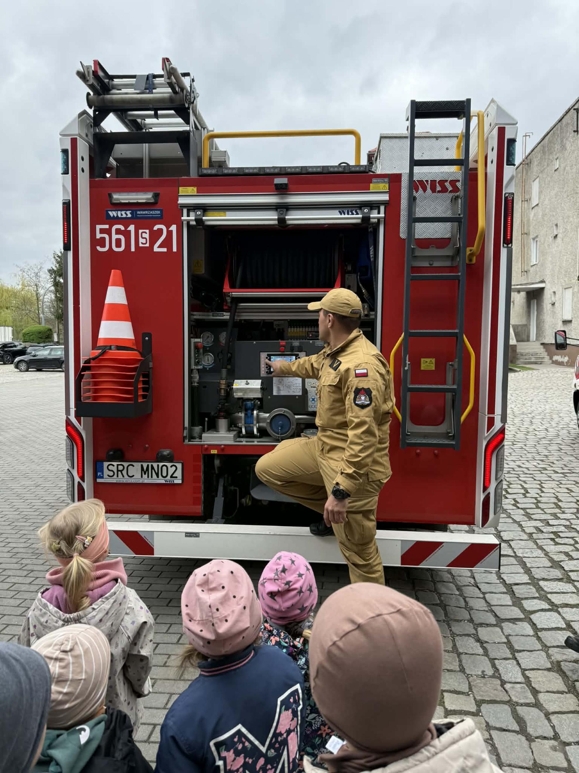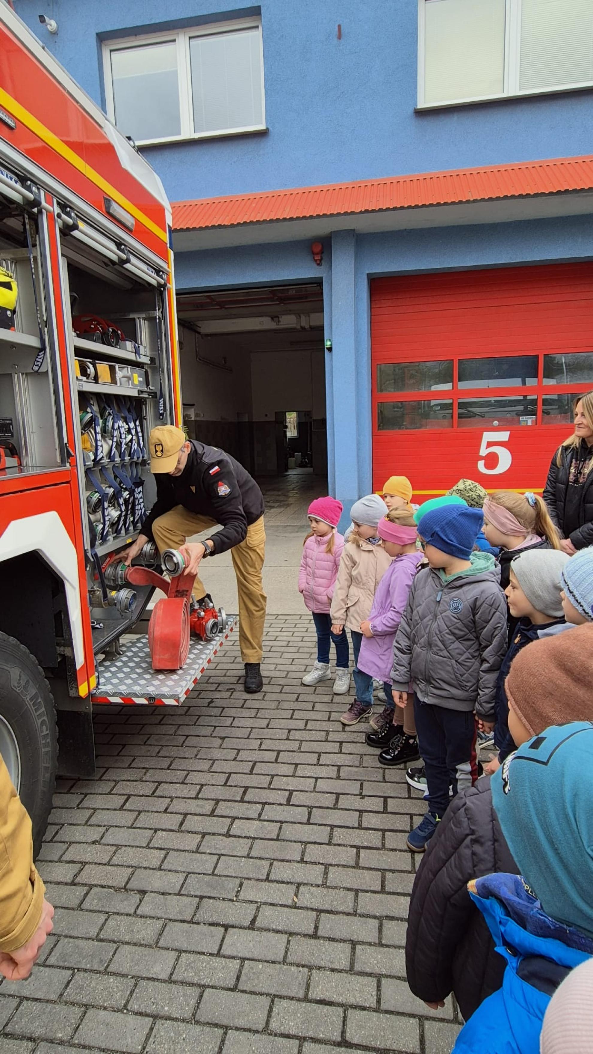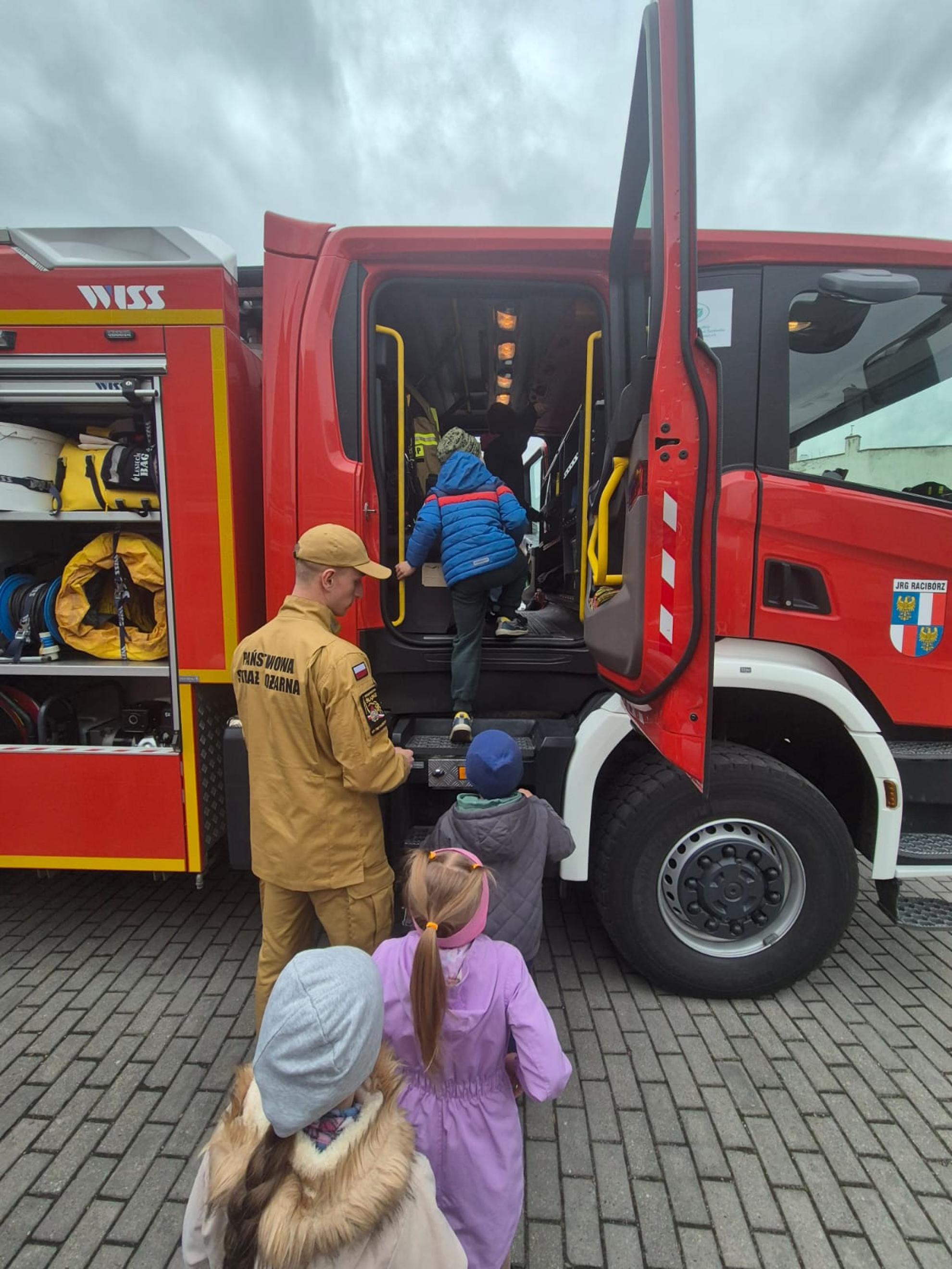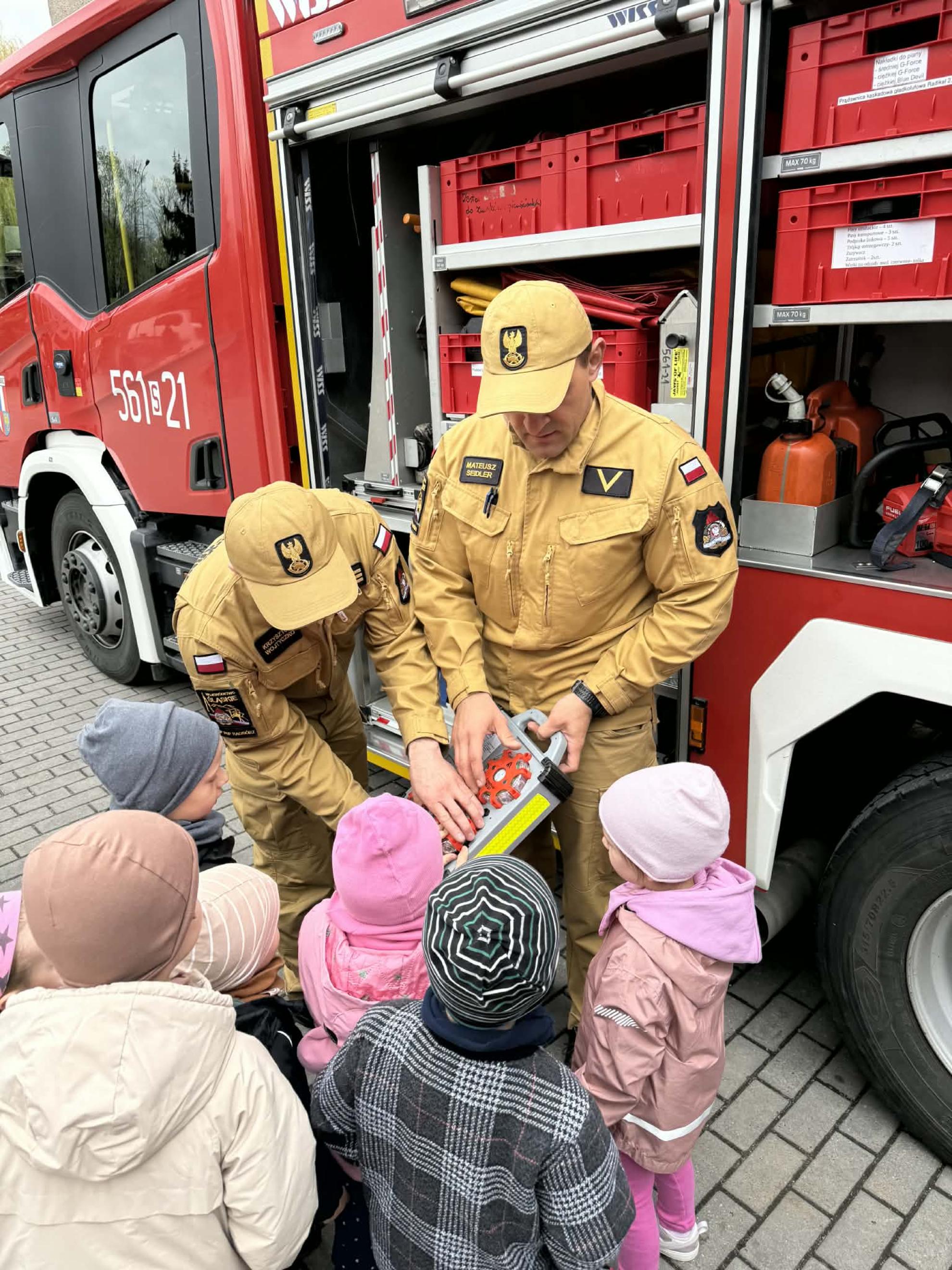 Podczas wizyty przedszkolaki miały okazję obejrzeć wozy strażackie, specjalistyczny sprzęt ratowniczy oraz wyposażenie, które wykorzystywane jest podczas akcji ratunkowych. Strażacy w bardzo ciekawy i przystępny sposób opowiedzieli o swojej pracy, przypomnieli zasady bezpieczeństwa oraz pokazali, jak należy reagować w sytuacjach zagrożenia.