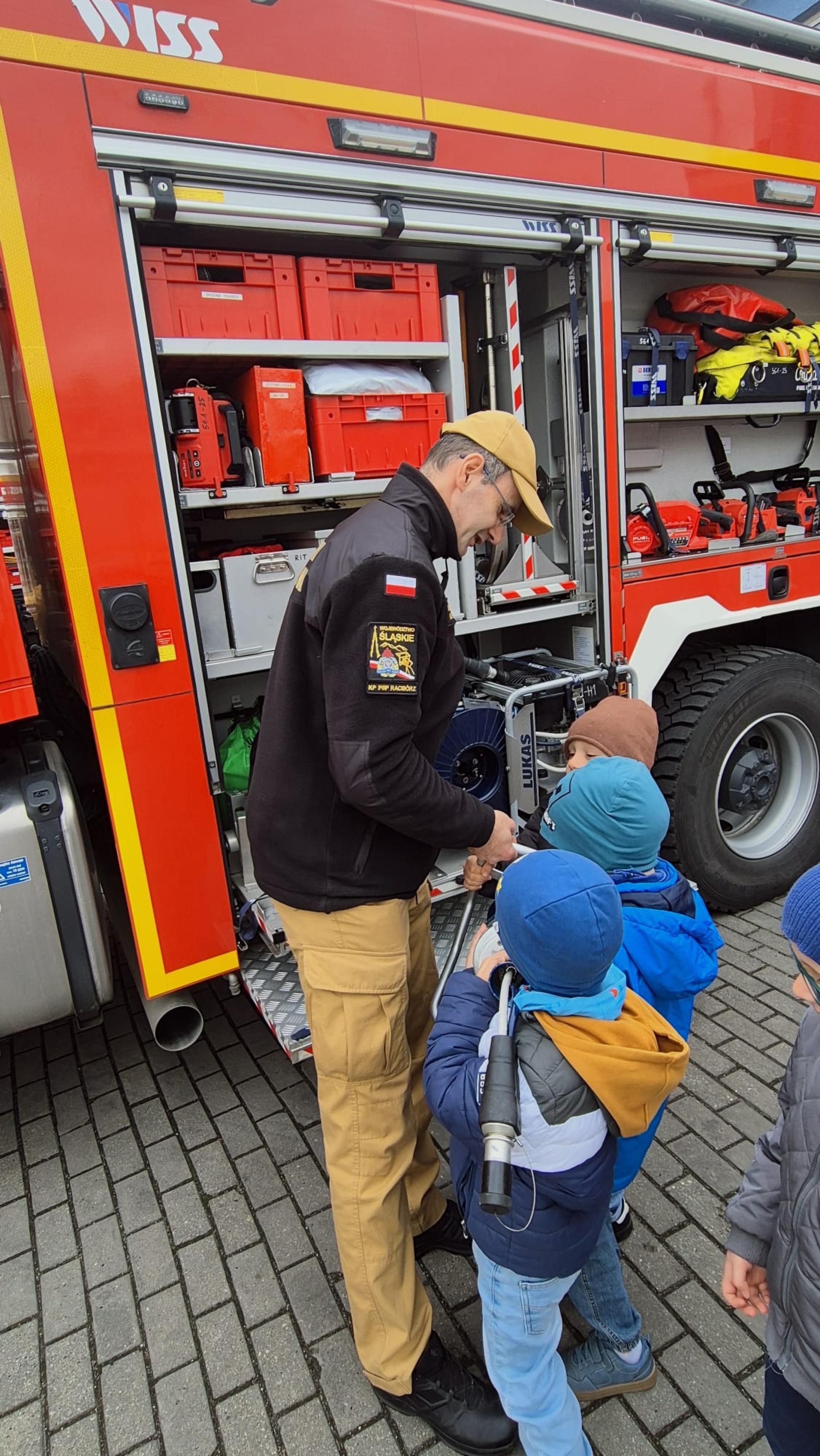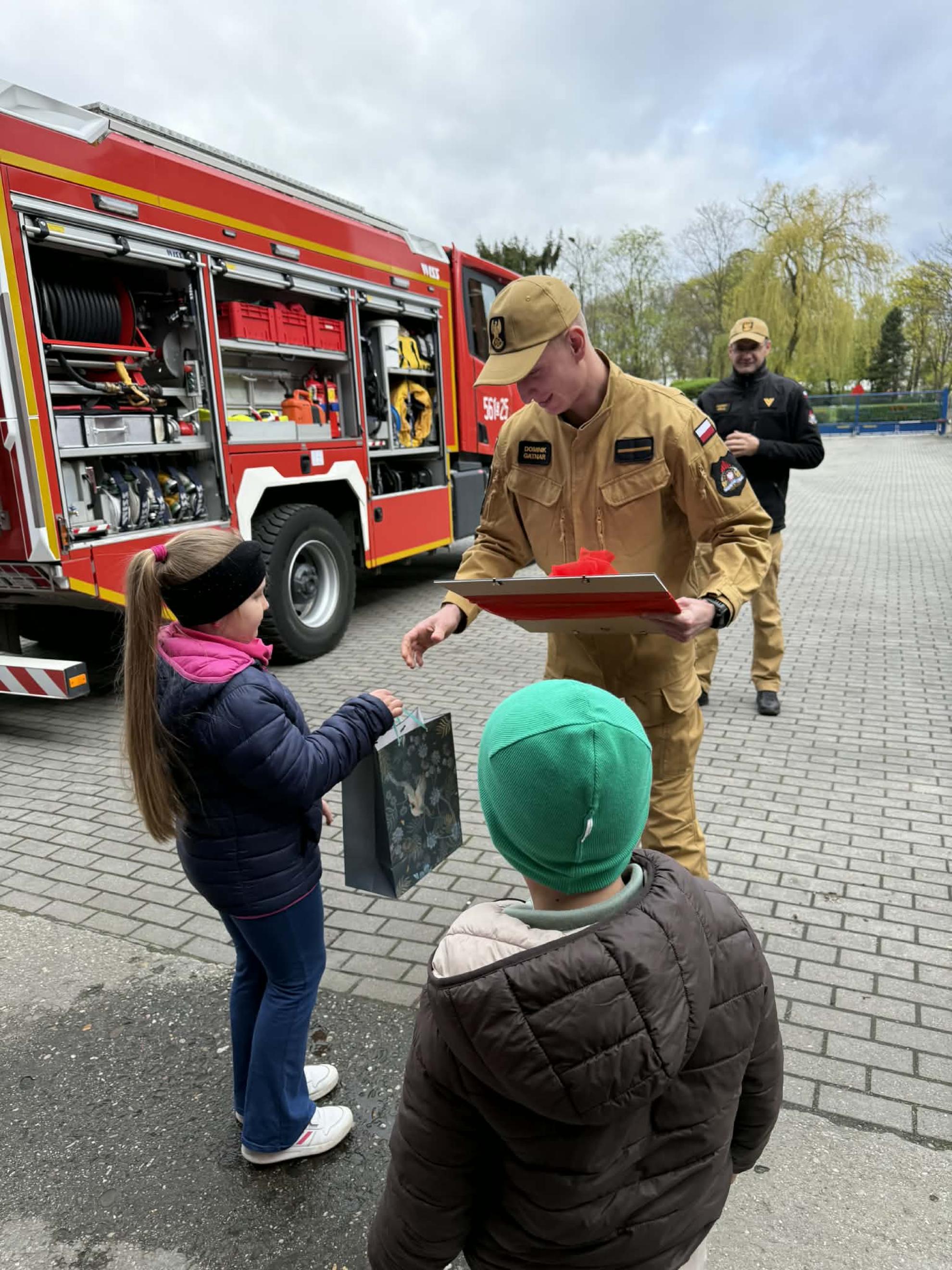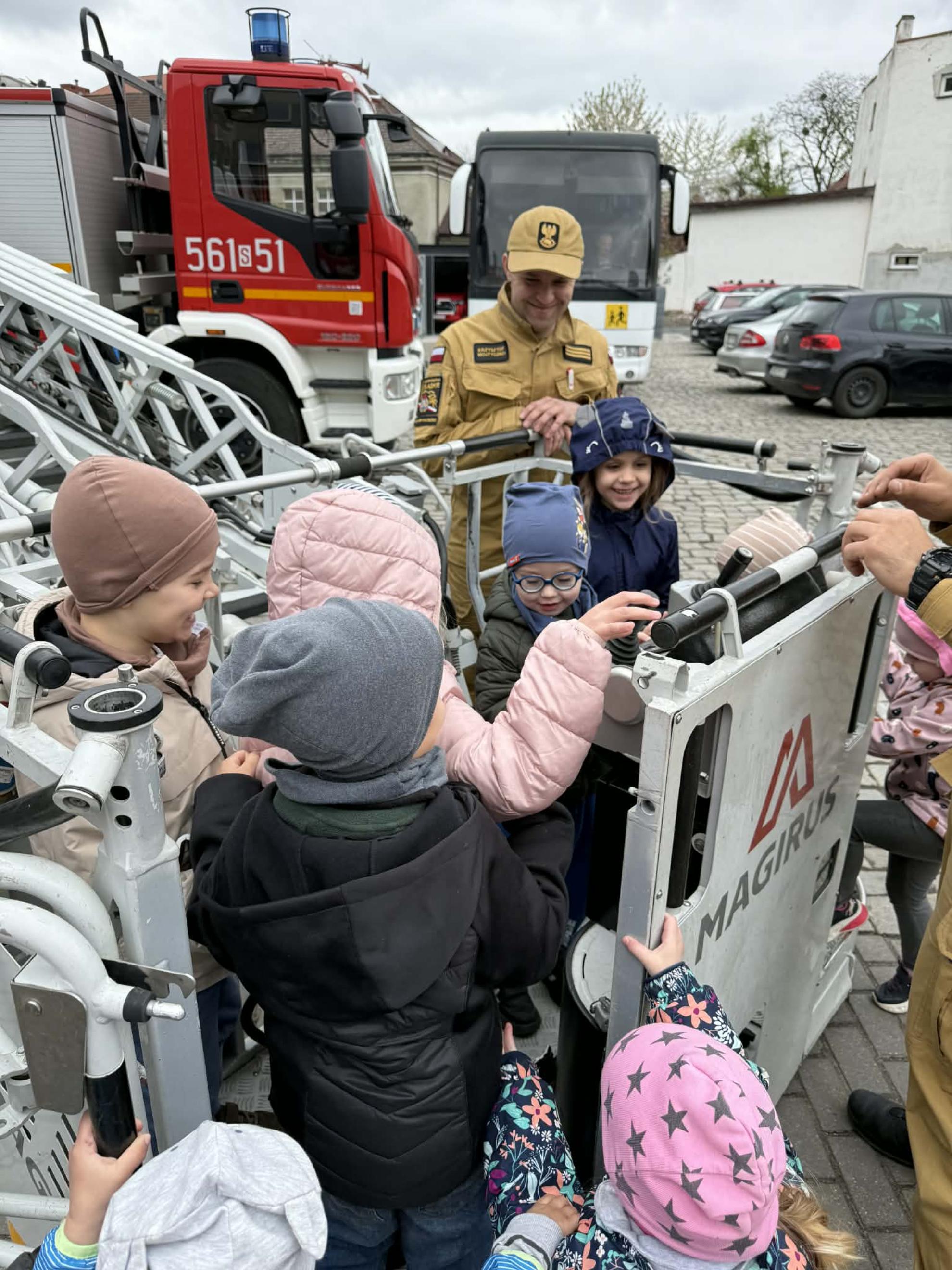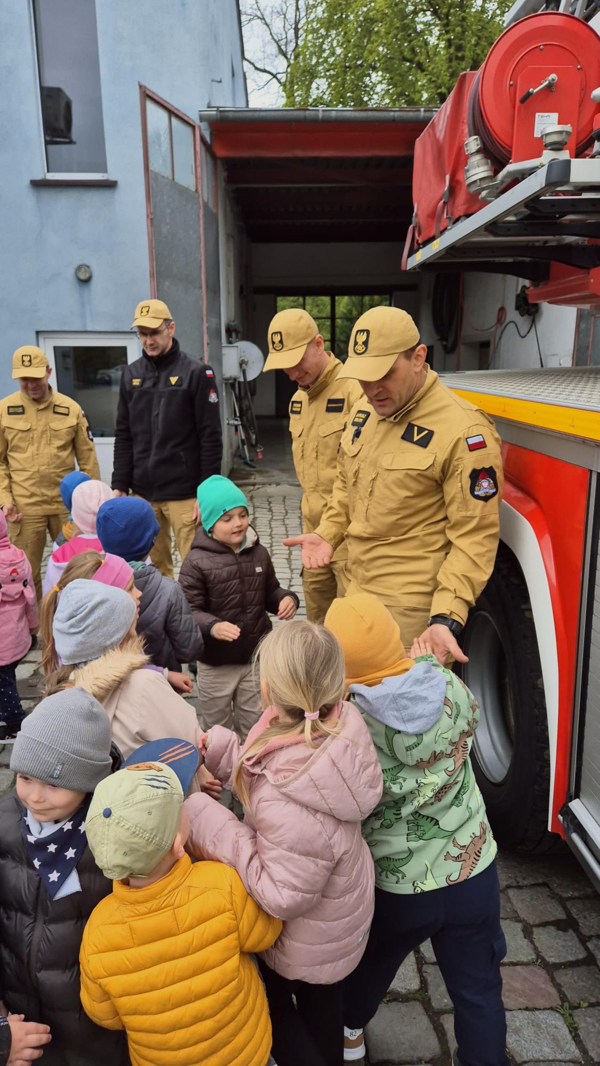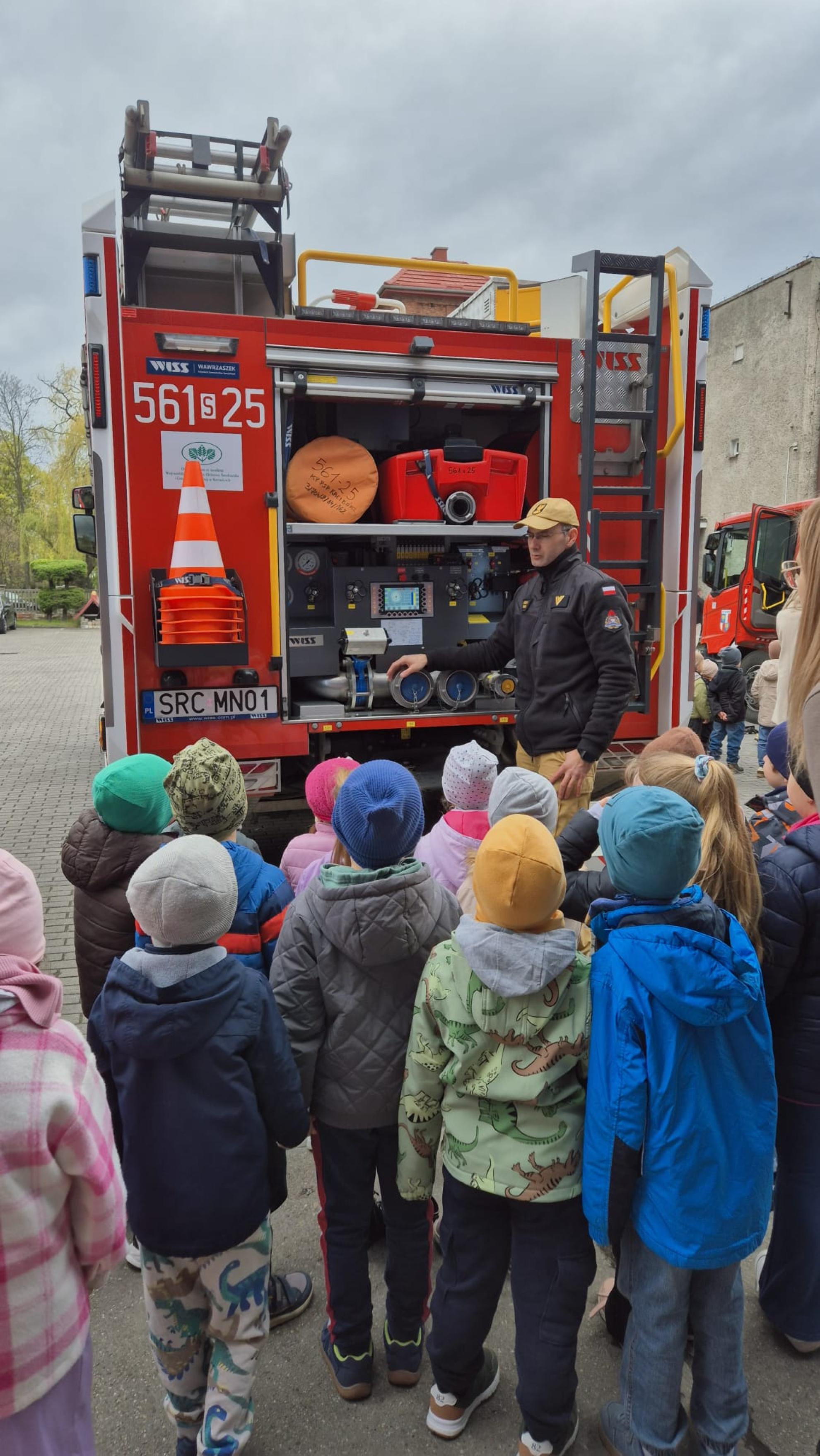 Podczas wizyty przedszkolaki miały okazję obejrzeć wozy strażackie, specjalistyczny sprzęt ratowniczy oraz wyposażenie, które wykorzystywane jest podczas akcji ratunkowych. Strażacy w bardzo ciekawy i przystępny sposób opowiedzieli o swojej pracy, przypomnieli zasady bezpieczeństwa oraz pokazali, jak należy reagować w sytuacjach zagrożenia.